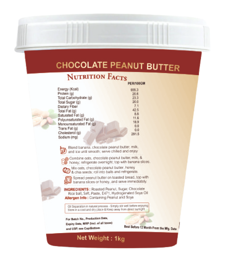 Packed with plant-based protein, fiber, and healthy fats, this spread fuels your energy, supports muscle recovery, and helps maintain a balanced diet. The gluten-free and zero trans-fat formula ensures guilt-free enjoyment anytime – perfect for fitness-conscious individuals and chocolate lovers alike.